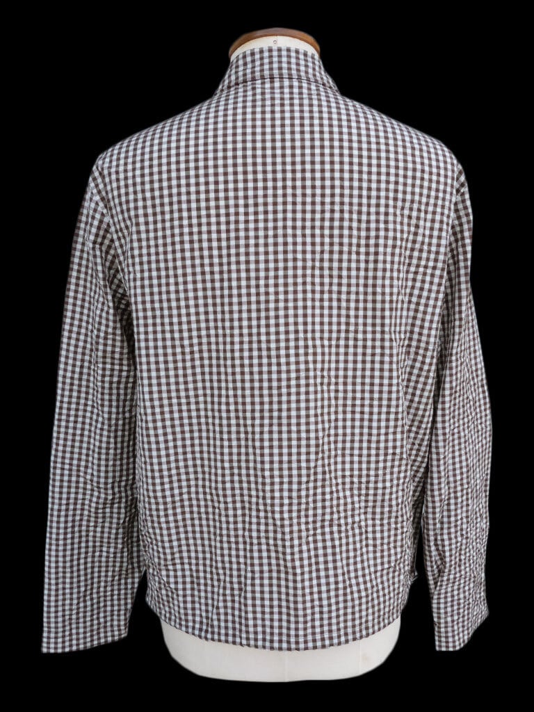 パターンとテクスチャーで遊ぶスタイルのシャツジャケットです。ギンガムチェックモチーフを施したクリンクル加工のコットン混素材を使用しています。サイドにポケットのついたジップアップスタイルが実用的なタッチを添え、クラシックなシルエットに抜け感を演出します。